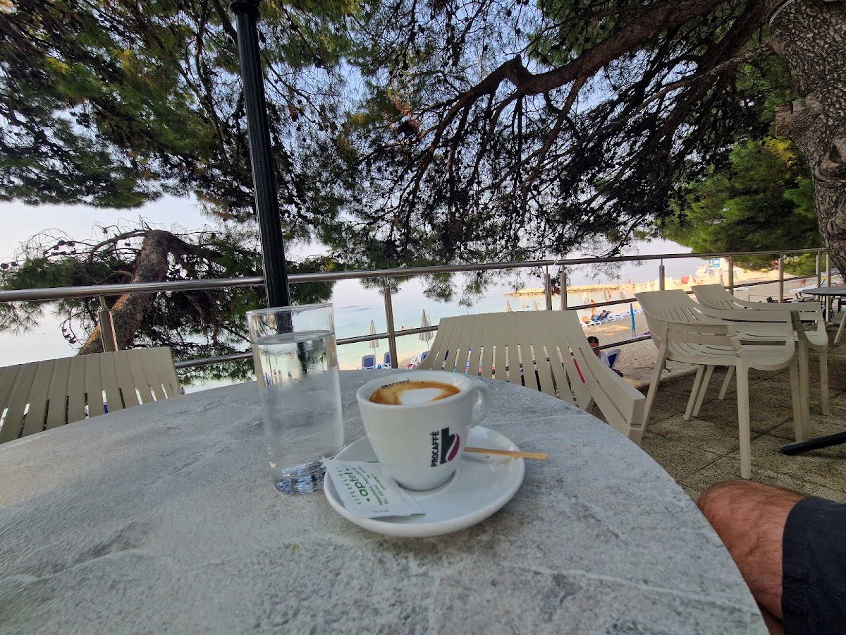 Welcome to Caffe bar Aquarelle, a shining gem located along the scenic Šetalište Dr. Franje Tuđmana in the charming coastal town of Makarska, Croatia. Nestled between the azure waters of the Adriatic Sea and the stunning backdrop of the Biokovo mountains, this café is not just a place to grab a drink; it's an experience that awakens your senses and connects you to the vibrant spirit of Croatia.